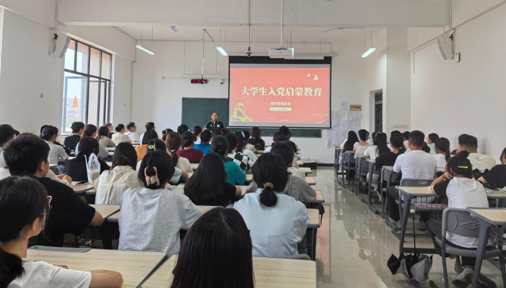 为深入学习贯彻习近平新时代中国特色社会主义思想、党的二十大和党的二十届二中全会、党的二十届三中全会精神,引导青年学子厚植爱党爱国的情感,9月27日中午,医学院党总支在仁济楼E310开展大学生入党启蒙教育活动。活动由医学院学生工作党支部书记孙智清主讲,学生工作党支部全体党员、入党积极分子以及新老生代表共计120余人参加。